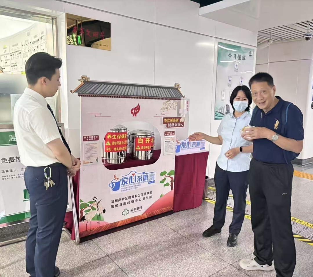 日前,由高新区教育和卫生健康局携手南屿卫生院、福州地铁集团共同打造的“爱心茶摊”在地铁2号线董屿站与厚庭站正式“开张”,免费为往来市民送上一缕清凉。