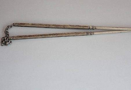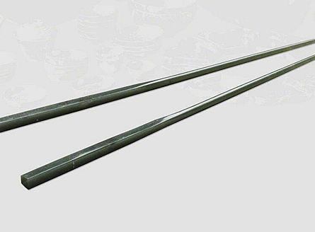 殷墟出的筷子头是用铜做的。到汉代以后主要是圆的筷子,竹的筷子。两端一样,并没有分哪个是上面,哪个是下面。我们现在也不太多用,我们家里用的筷子夹菜的那一端是圆头,我把它叫足,上面的方的,我把它叫首,就是头。