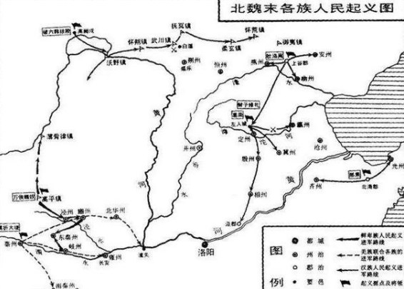 上图_ 六镇之乱,又称六镇起义(沃野镇,怀朔镇,武川镇,抚冥镇,柔玄镇,怀荒镇)