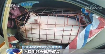 12月22日,央视《新闻直播间》报道,炒猪团运猪花招频出,在云南丽攀高速银江收费站,发现改装面包车运送生猪。央视截图