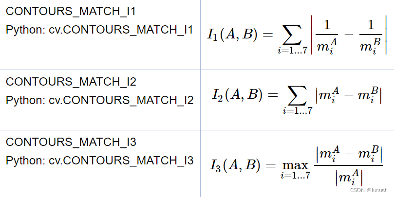 两个轮廓的相似度计算公式: