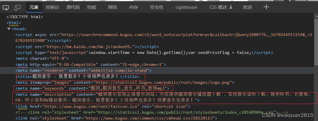 在这一篇博客中,我会用python来实现一个简单的网络爬虫。简单的爬取一下一些音乐网站、小说网站的标题、关键字还有摘要!所以这个爬虫并不是万能爬,只针对符合特定规则的网站使用。(只使用于爬标题、关键字和摘要的,所以只能爬在head标签中这三个信息都有的且meta标签中name参数在本文信息前面的网站。)希望大家看了这篇博客,能对大家学习爬虫有些帮助!(并不是很高深的爬虫,很基础!!!)