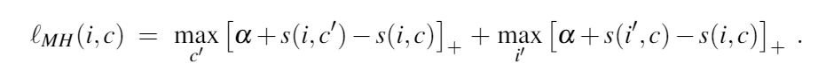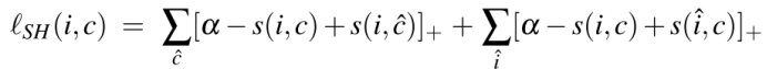 是适合单个训练样本的损失函数,受使用三元组损失进行图像检索的启发,最近联合视觉语义嵌入的方法使用了基于铰链的三元组排序损失(本文基于此损失函数) :