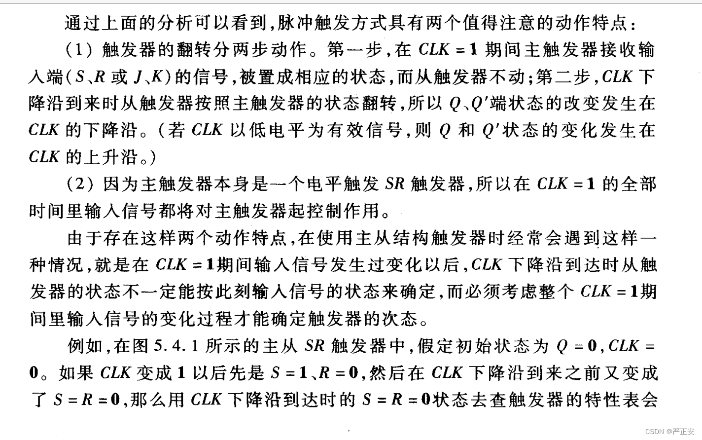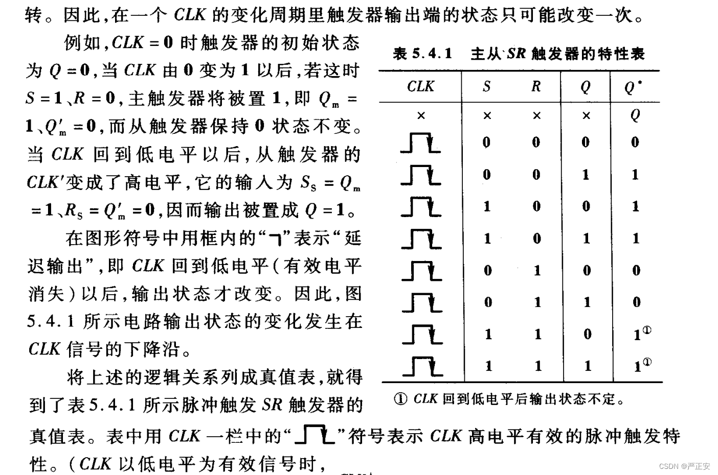 CLK=1期间,主FF工作,从FF不工作,主FF形成一个同步SR触发器的功能