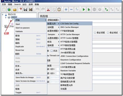 6、多组数据可增加CSVDataSetConfig(添加.csv格式的文件,并在参数值里以${x}格式写入)