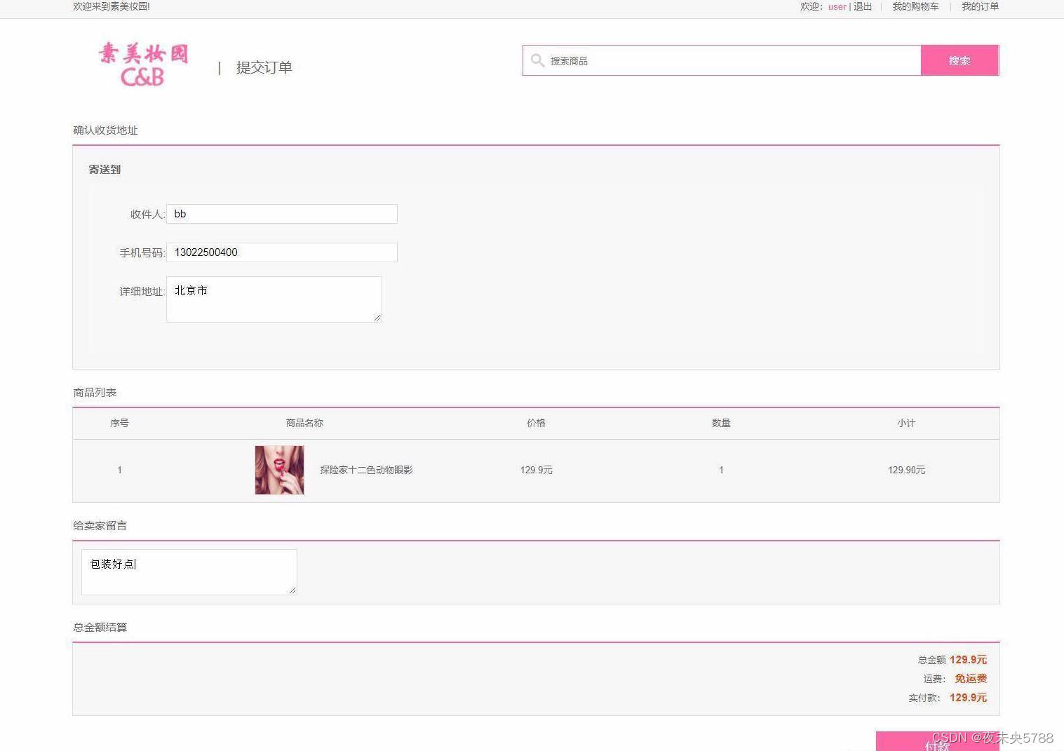 提交订单,用户登录,用户首页,查看商品,查看订单,查看购物车等功能。