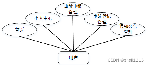 用户登录进入系统可以查看首页,个人中心,事故申报管理,事故登记管理,通知公告管等功能,并根据需要进行详细操作,如图5-8所示。