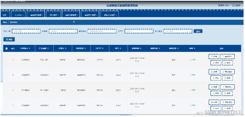 本课题要求实现一套交通事故记录信息管理系统,系统主要包括(管理员和用户)两个模块等功能。
