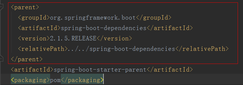 可以看到这里有一个parent标签,这就父级工程spring-boot-starter-parent,这叫做Spring Boot的起步依赖,那么这个起步依赖有什么东西呢,我们使用ctrl+左键打开看看