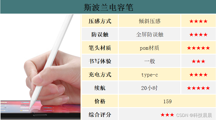 斯波兰电容笔支持Type-c快速充电模式,充电时间为5分钟就能提供为电容笔2个小时的工作时间;这款电容笔整体防误触书写更加随意,无需悬挂手掌在屏幕的上方。倾斜角度可绘制出不同的粗细线条。POM材料的笔尖更耐磨,不会损伤显示屏。