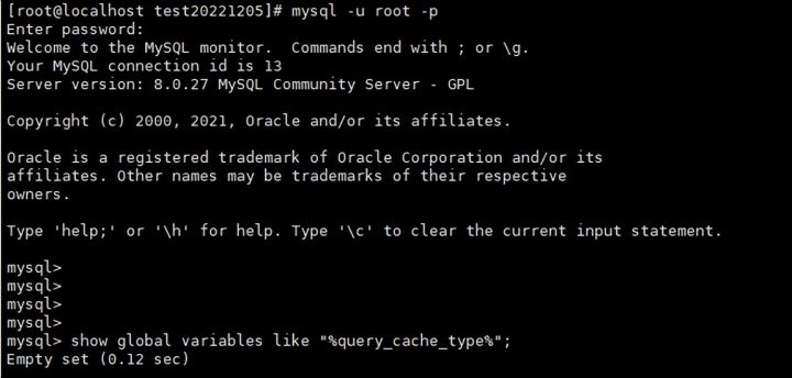 mysql> show status like'%Qcache%'; //查看运行的缓存信息