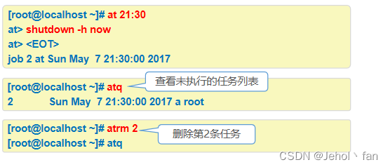 crontab -r [-u 用户名] //删除整个任务计划项目