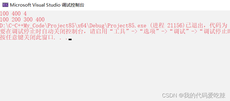 {ST* Stact= StactInit();StactPushBank(Stact, 100); StactPushBank(Stact, 200); StactPushBank(Stact, 300); StactPushBank(Stact, 400); Print(Stact);printf("StactSize:%d\n",StactSize(Stact));//Pop一次StactPopBank(Stact);Print(Stact);printf("StactSize:%d\n", StactSize(Stact));StactDestory(Stact);return 0;