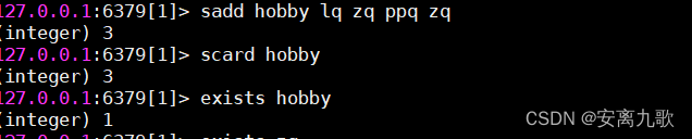 sadd hobby lanqiu zuqiu bingpangqiu zhuoqiu# scard key #获取集合中的元素数量