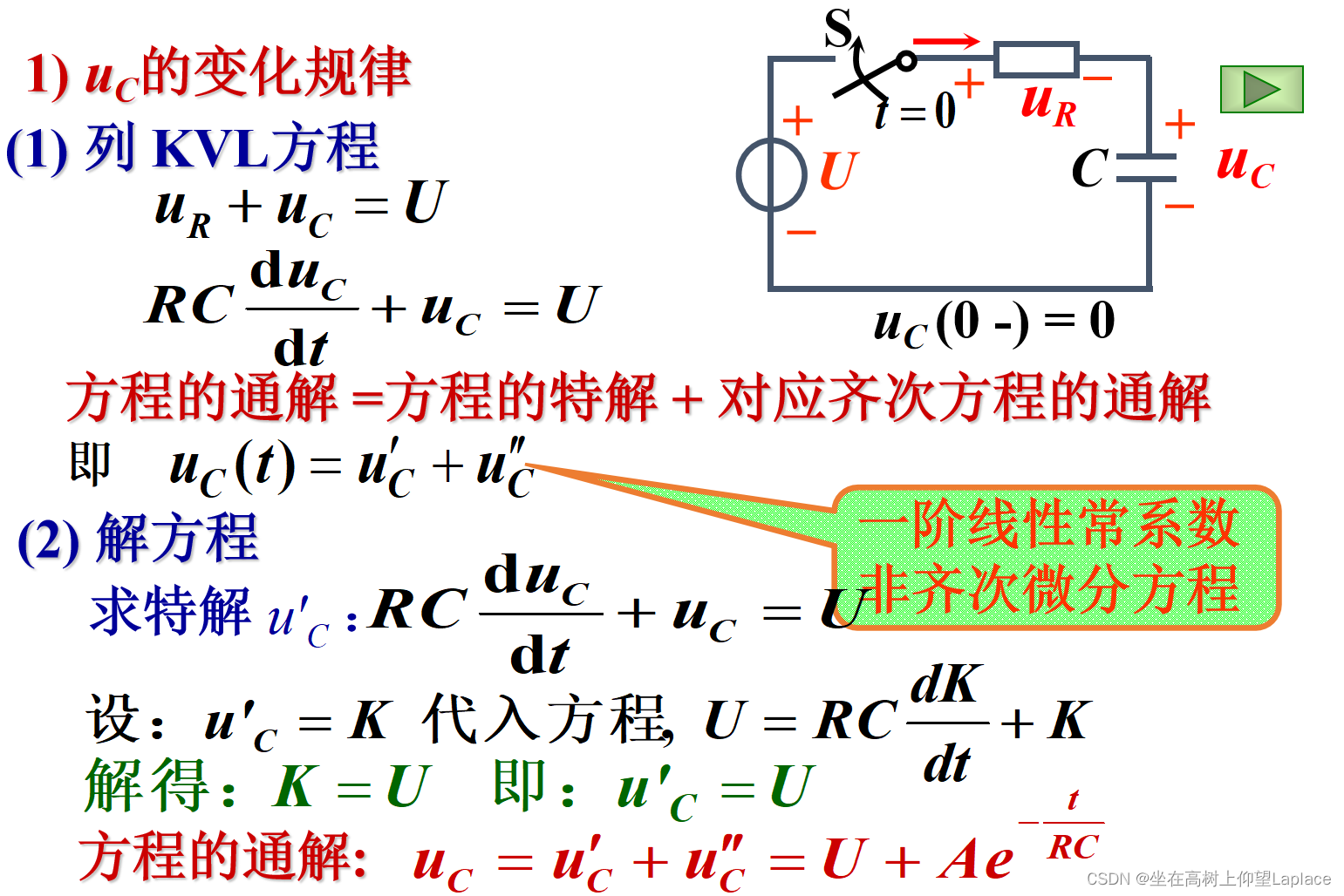 1. 经典法: 根据激励(电源电压或电流),通过求解 电路的微分方程得出电路的响应(电压和 电流)。