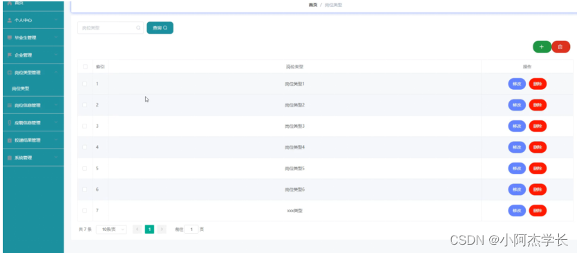 岗位类型管理,在岗位类型管理页面可以对索引、岗位类型等内容进行修改或删除等操作,如图4-8所示。