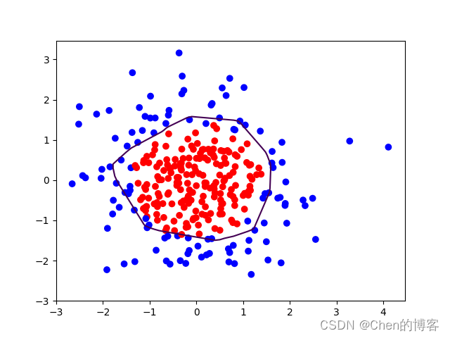 with tf.GradientTape() as tape: # 记录梯度信息h1 = tf.matmul(x_train, w1) + b1 # 记录神经网络乘加运算h1 = tf.nn.relu(h1)y = tf.matmul(h1, w2) + b2# 采用均方误差损失函数mse = mean(sum(y-out)^2)loss_mse = tf.reduce_mean(tf.square(y_train - y))# 添加l2正则化loss_regularization = []# tf.nn.l2_loss(w)=sum(w ** 2) / 2loss_regularization.append(tf.nn.l2_loss(w1))loss_regularization.append(tf.nn.l2_loss(w2))# 求和# 例:x=tf.constant(([1,1,1],[1,1,1]))# tf.reduce_sum(x)# >>>6loss_regularization = tf.reduce_sum(loss_regularization)loss = loss_mse + 0.03 * loss_regularization # REGULARIZER = 0.03# 计算loss对各个参数的梯度