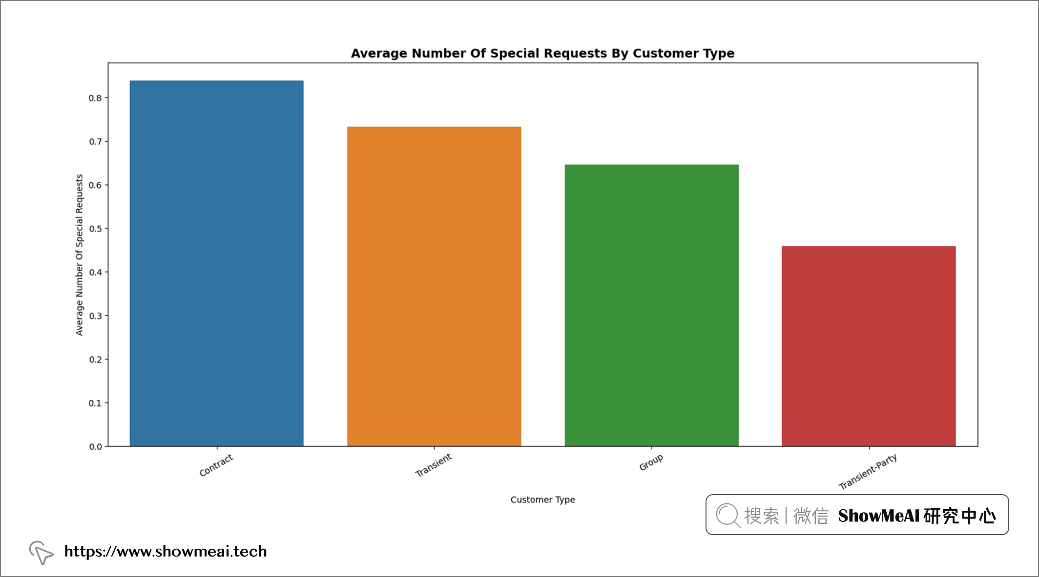 📢 结论:跟团客人的特殊要求数量最多,而临时派对客人的特殊要求数量最少。
