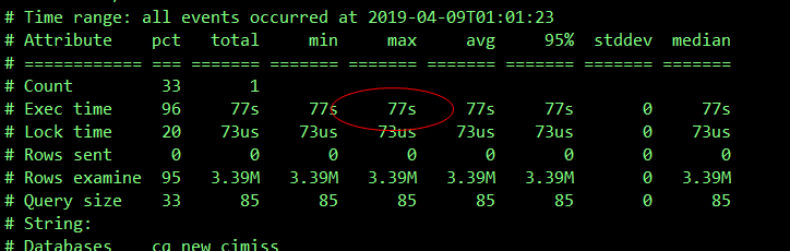 最近一个星期内,总共记录的慢查询执行花费时间为 25403s,最大的慢 SQL 执行时间为 266s,平均每个慢 SQL 执行时间 5s,平均扫描的行数为 1766 万。