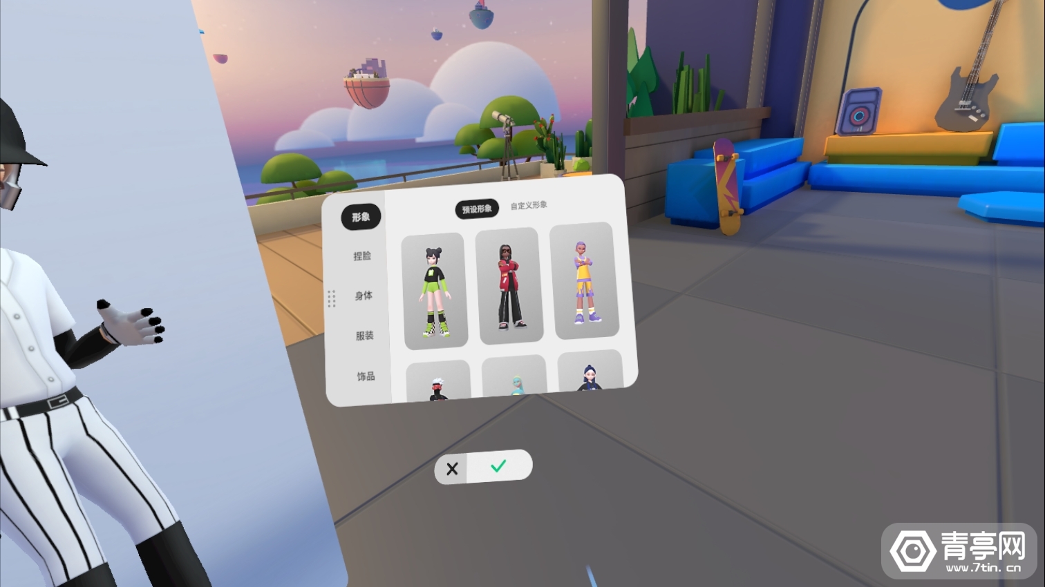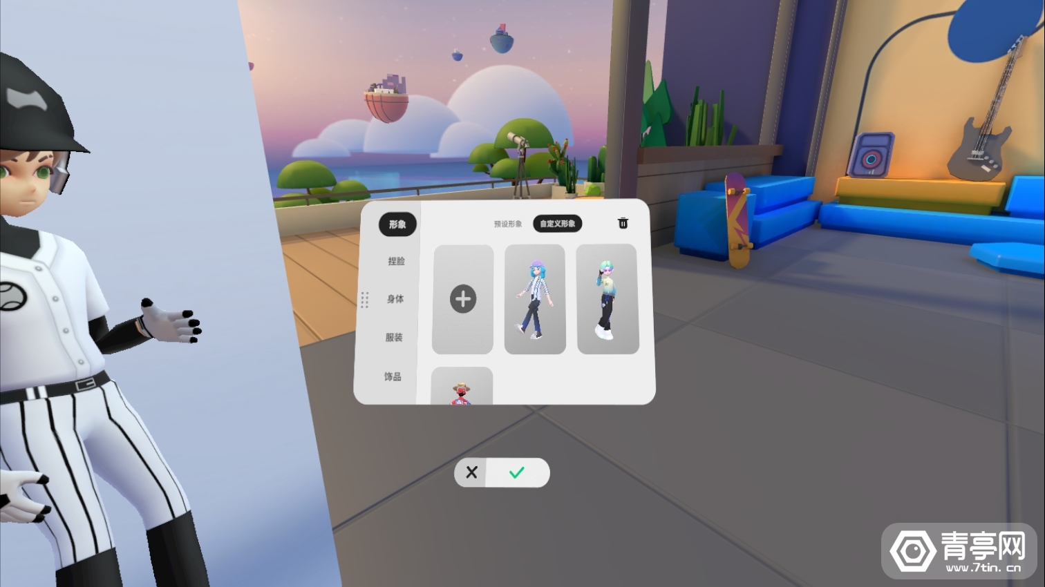 《轻世界》提供了目前PICO最新、最丰富的Avatar系统,风格偏小清新,穿搭的色调也都很浓郁,和几个海外同类型平台的Avatar有着明显的区分,我认为比较符合国内玩家的审美偏好。