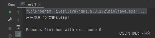 class Animal {public String name;public int age;public void sleep() {System.out.println(name + "正在睡觉!");} }class Dog extends Animal {public void wangwang() {System.out.println(name + "汪汪叫!");}public void sleep(){System.out.println(name+"重写了父类的sleep!");//发生了重写} }class Cat extends Animal {public void miaomiao() {System.out.println(name + "喵喵叫!");} }public class Test_1 {public static void main(String[] args) {Animal animal1 = new Dog();animal1.name = "汪汪";animal1.age = 3;animal1.sleep();}