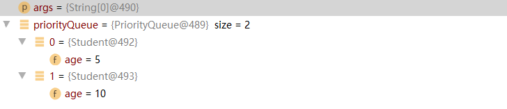 当queue数组初始化完毕时, 需要向数组中存放元素,即进行 priorityQueue.offer(new Student(10));