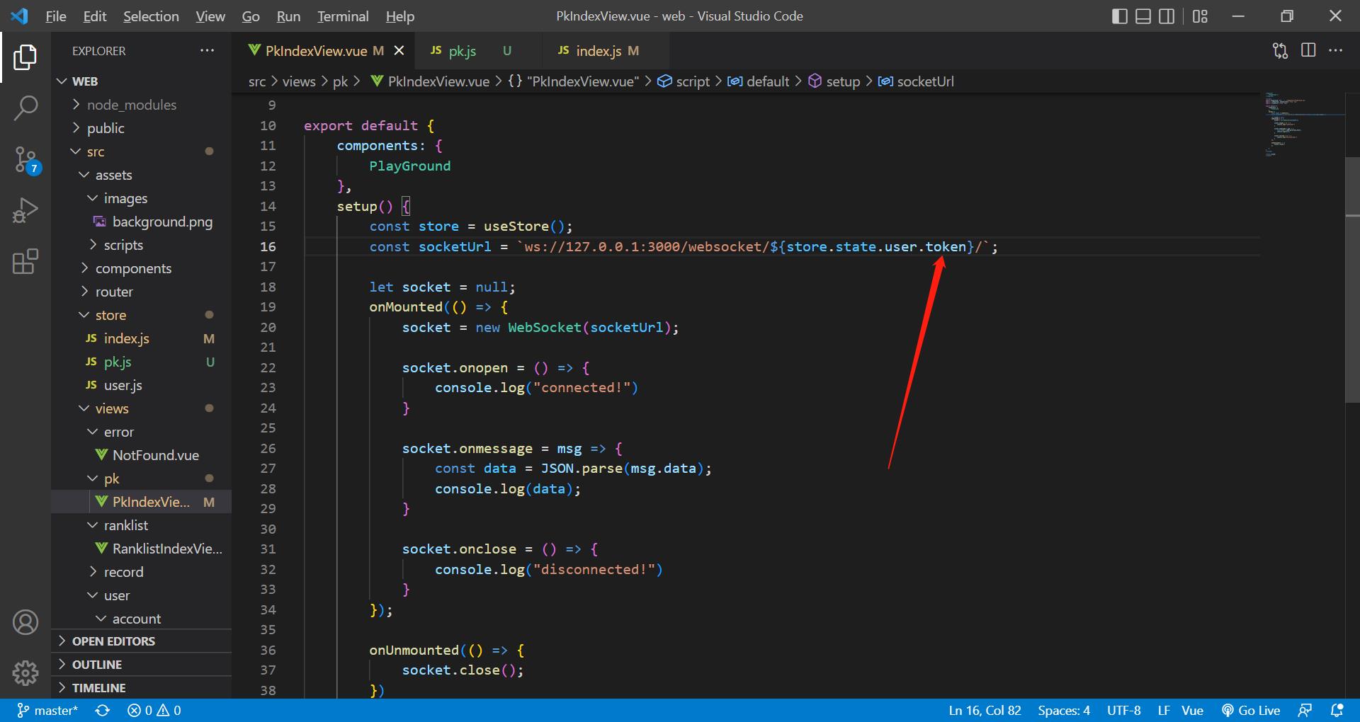 const socketUrl = `ws://127.0.0.1:3000/websocket/${store.state.user.token}/`;