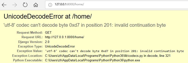 步骤 5 根据关键错误日志信息定位问题,排查错误,通过把home.html 修改另存为UTF-8 编码格式,即可解决上面的问题。