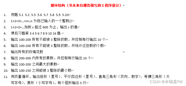 循环结构,小喵练习得差不多有这些数,有些重复了的,小喵挑拣了些,最近状态不对,小喵会对自己的博客进行再度完善的,希望下一次的小喵会更美好。