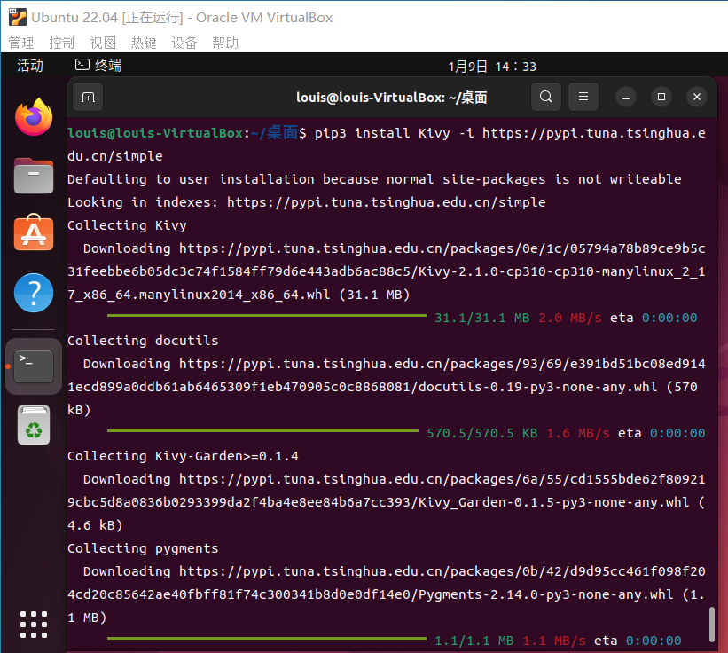 现在我们在终端中输入以下命令开始下载并安装Kivy库: