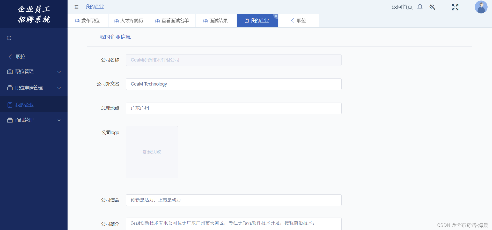 招聘系统将为招聘者和求职者构建一个功能齐全、方便快捷的招聘平台,减少双方投入招聘活动的成本,为招聘求职双方带来便利,系统将实现如下目标: (1)针对系统内的不同角色,系统能够赋予其不同的操作权限。招聘者和求职者可以通过此系统进行招聘和求职工作。招聘者可以在系统进行职位的发布和下架,同时可以查看收到的投递简历,对应聘简历进行筛选,对于符合招聘需求的求职者预约面试;求职者可以通过此系统进行职位查看、收藏、简历制作和投递、查看投递状况和面试情况等操作;平台管理员能够管理职位类别和对企业信息、职位进行审核。