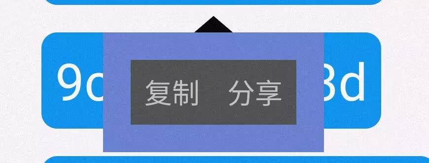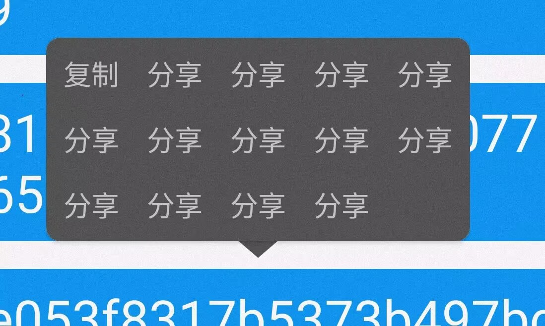 menus: [{name: "复制",handle: () => {console.log("复制");},},{name: "分享",handle: () => {console.log("分享");},},],