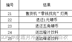 中间节点与结果没有值,代表因违反约束而不会出现的情况,16、32列没有做任何操作,8、12、24、28列不符合常理(投币却没有选择饮料)为无效列,14、15、30、31列不符合常理(只选择饮料却没投币)为无效列。
