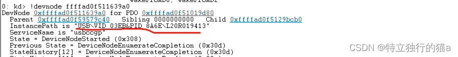 4.使用!devnode 扩展显示有关设备树中节点的信息。