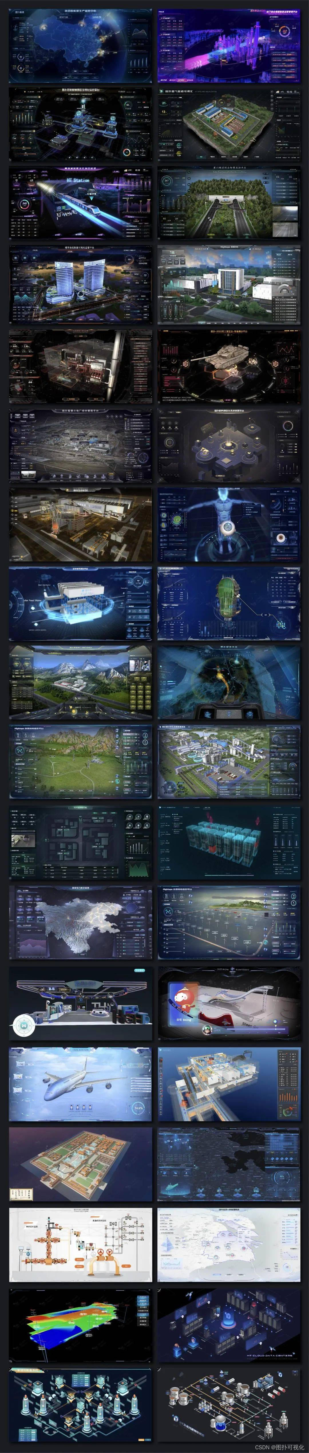 相较于 InTouch/IFix/WinCC 这些传统组态软件,图扑基于 Web 的平台更适合 C/S 向 B/S 转型的大趋势,多元素丰富的可视化组件和支持快捷的数据绑定方式,可用于快速创建和部署,完成基于 Web 服务的实时数据监控与服务端的多用户访问等。可以应用于电力系统、给水系统、石油、化工等领域,为各类工业场景提供 2D、2.5D、3D 多种清晰美观的可视化服务。