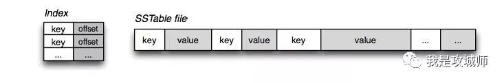 如上所述,SSTable是一种拥有持久化,有序且不可变的的键值存储结构,它的key和value都是任意的字节数组,并且了提供了按指定key查找和指定范围的key区间迭代遍历的功能。SSTable内部包含了一系列可配置大小的Block块,典型的大小是64KB,关于这些Block块的index存储在SSTable的尾部,用于帮助快速查找特定的Block。当一个SSTable被打开的时候,index会被加载到内存,然后根据key在内存index里面进行一个二分查找,查到该key对应的磁盘的offset之后,然后去磁盘把响应的块数据读取出来。当然如果内存足够大的话,可以直接把SSTable直接通过MMap的技术映射到内存中,从而提供更快的查找。