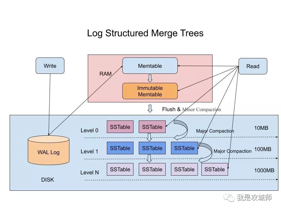 因此LSM-Tree的优点是支持高吞吐的写(可认为是O(1)),这个特点在分布式系统上更为看重,当然针对读取普通的LSM-Tree结构,读取是O(N)的复杂度,在使用索引或者缓存优化后的也可以达到O(logN)的复杂度。