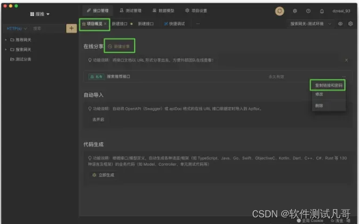 在项目概览,可以生成在线接口文档。