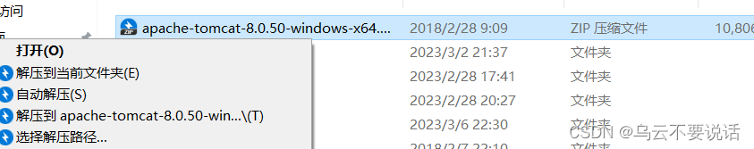 找到你需要用的 Tomcat 版本对应的 zip 压缩包,解压到需要安装的目录即可。