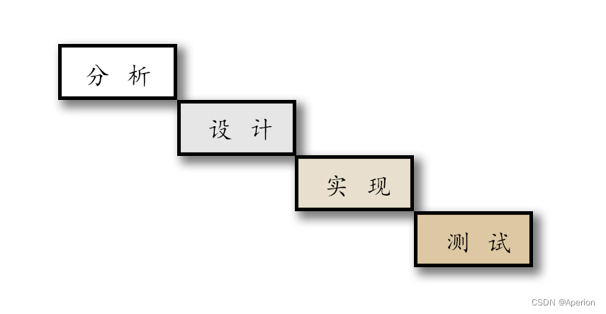 瀑布模型顾名思义就是软件的开发过程像从上而下的瀑布一样,没有间断,一次开发到位。也就是说开发过程只有一个方向流动,这意味着前一个阶段不结束,后一个阶段不能停止。