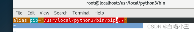 cat /etc/profile.d/python.sh > /etc/profile.d/pip.shvim /etc/profile.d/pip.shalias pip='/usr/local/python3/bin/pip3.7'