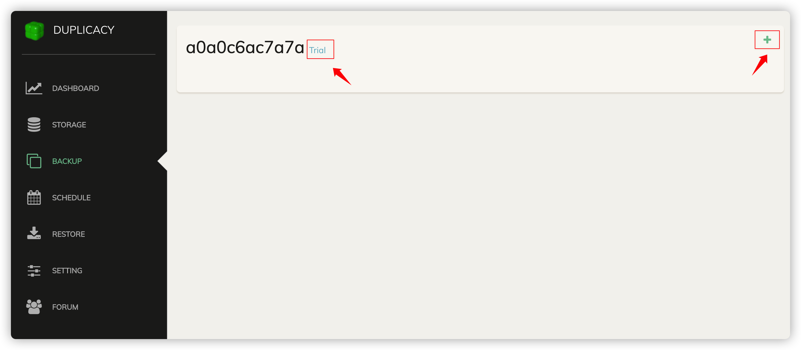 旁边有一个 Trial 链接,表示 Duplicacy Web Edition 已经自动下载了一个试用许可证。如果您有个人或商业许可证,您可以单击试用链接并输入许可证激活码以应用许可证。
