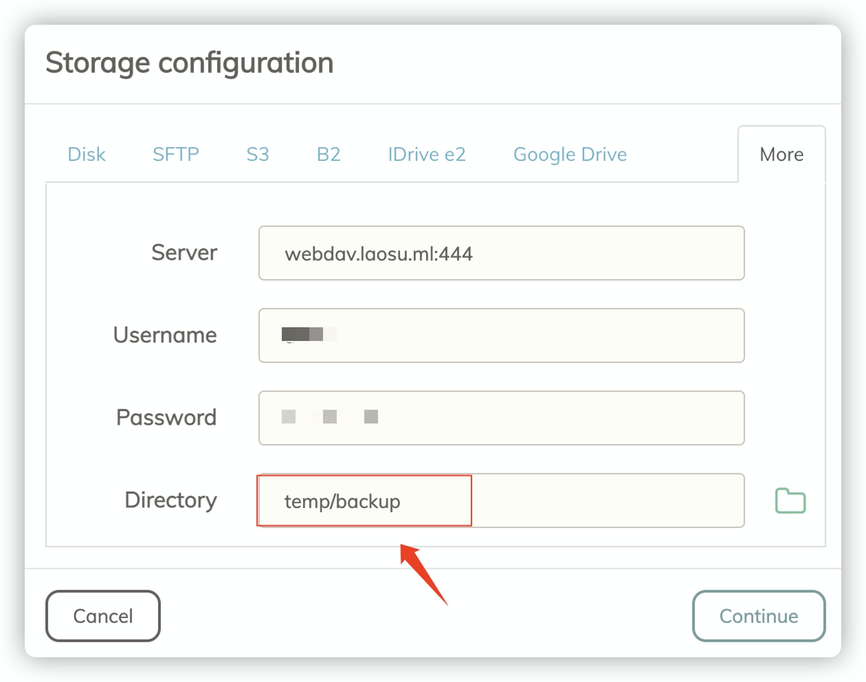 老苏选了 WebDAV,备份位置指向了 aliyundrive-webdav 中设置的阿里云盘