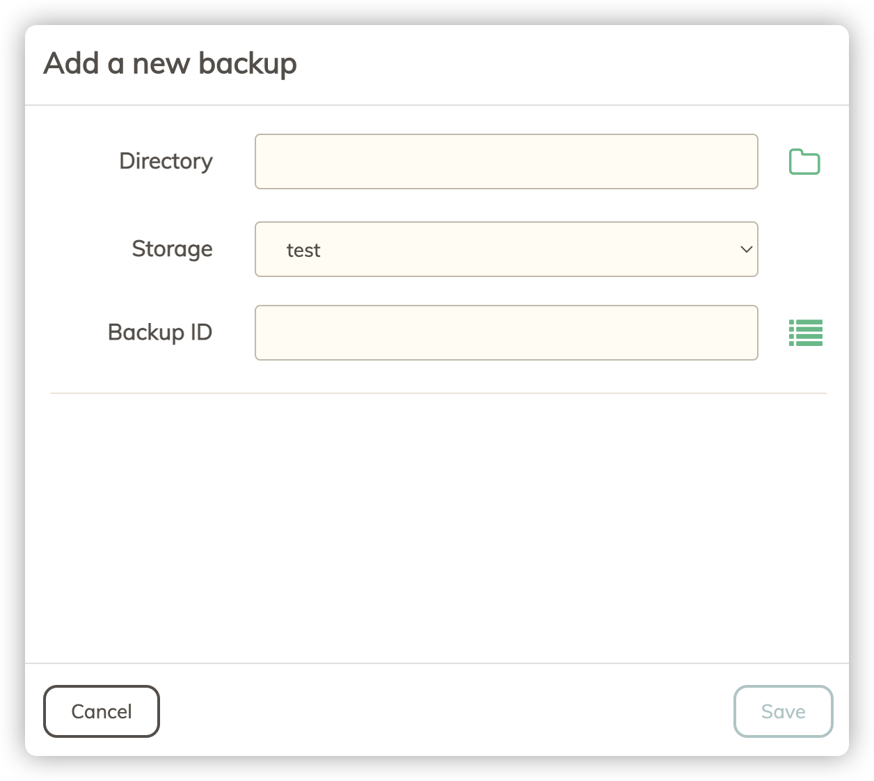可以通过单击 Backup ID 输入旁边的列表按钮来找出现有的 Backup ID。但是,有些情况下您想要使用现有的。例如,当您需要在另一台计算机上恢复目录时,您需要选择用于为该目录创建备份的原始Backup ID。