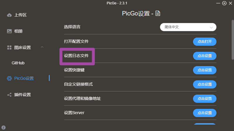 针对这一情况,我们可以打开”设置日志文件“,并在此打开日志。