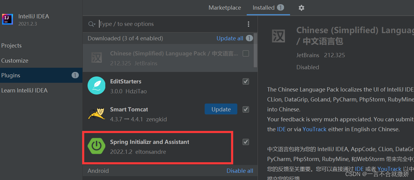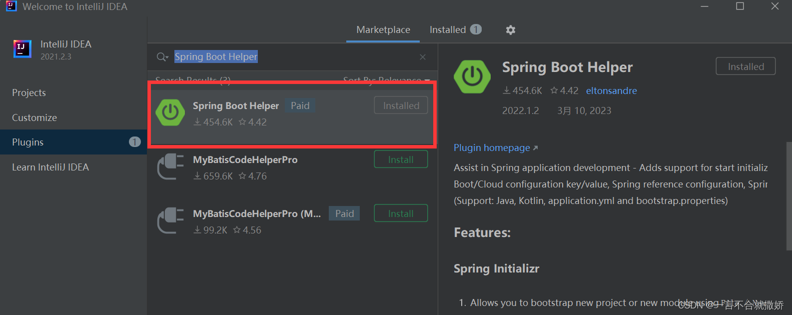 这里需要注意的一点是,咱们是用的IDEA版本最好的 2021.2.3,因为更新的版本中这个插件的使用是需要收费哒~