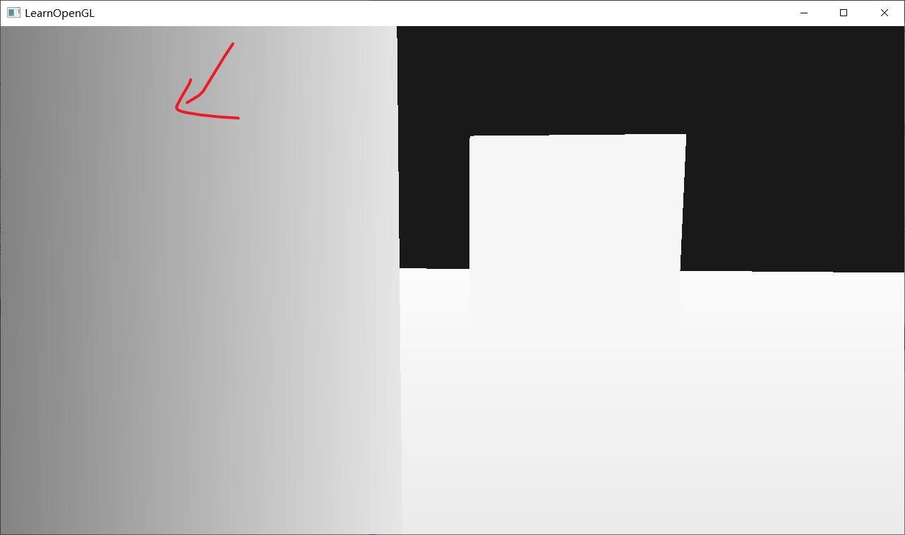 由于线性化的深度值处于near与far之间,它的大部分值都会大于1.0并显示为完全的白色。通过在main函数中将线性深度值除以far,我们近似地将线性深度值转化到[0, 1]的范围之间