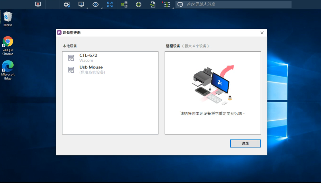 该设备将进入远程设备列表中,如下图所示 ,点击“确定”按钮, 该设备即可重定向到被控端设备。