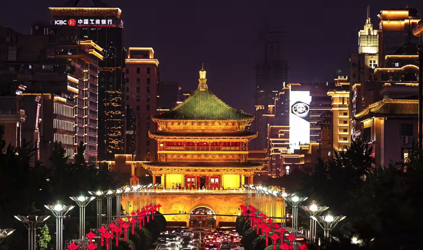 晚上去附近的钟楼,可以先在下面合影,然后到开元商城5楼俯瞰。